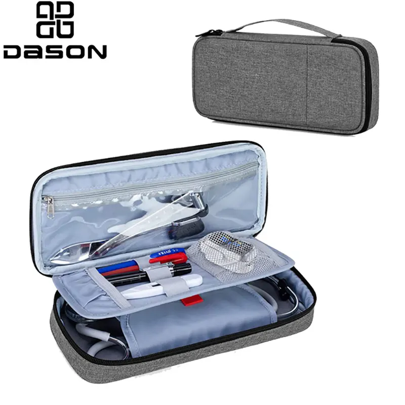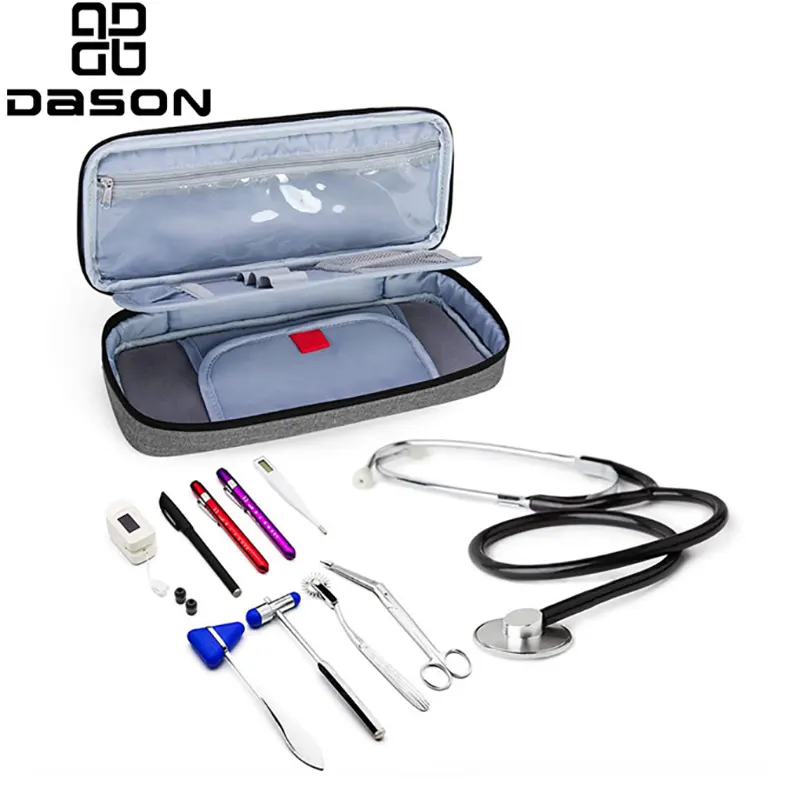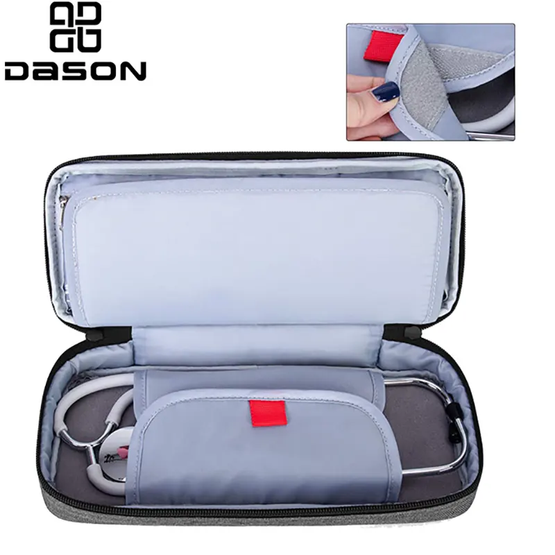 Nurse Stethoscope Case este o husă portabilă pentru stetoscop special concepută pentru asistente. Deoarece asistentele trebuie adesea să poarte stetoscoape, punerea lor în cutii le poate cauza deteriorarea în timpul transportului. Carcasa pentru stetoscop este fabricată din material plastic neted și durabil pentru a rezista la uzura și impactul utilizării regulate. Interiorul conține o căptușeală moale care asigură că stetoscopul nu poate fi zgâriat sau deteriorat de niciun obiect extern, împiedicând în același timp pătrunderea impurităților și a petelor în stetoscop. Carcasa pentru stetoscop este realizată din țesătură moale din poliester, cu căptușeală 210D și fermoar neted. Are un compartiment despărțitor în interior și are o bună rezistență la șocuri și rezistență la apă. Conține un suport interior detașabil, care poate proteja eficient stetoscopul de impact și zgârieturi. Există o pungă din plasă în interior, care poate depozita articole medicale mici; există inele elastice pe pereții despărțitori pentru depozitarea pixurilor, termometrelor etc. Design cu fermoar dublu pentru deschidere și închidere ușoară. Geanta este compactă și ușoară, fiind ușor de depozitat într-un rucsac. Designul mânerului portabil oferă confort pentru a studia și a lucra în exterior. Carcasa pentru stetoscopul asistentei este un instrument practic pentru toate asistentele. Este ușor și portabil, poate găzdui majoritatea stetoscoapelor și are funcția de a proteja stetoscopul, de a identifica zona de identificare și de a preveni contaminarea externă.